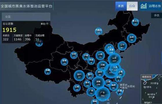 自2015年4月國務(wù)院印發(fā)《水污染防治行動(dòng)計(jì)劃》(簡稱“水十條”)以來,城市黑臭河流治理一直引人關(guān)注。日前,在全國城市黑臭水體污染物整理管理平臺上,公布了2016第4季度黑臭水體污染物態(tài)勢分析報(bào)告及最新黑臭水體污染物數(shù)據(jù)。資料顯示,目前全國已認(rèn)定黑臭水體污染總計(jì)數(shù)量為1915個(gè),廣東242條、安徽217條、湖南158條分別位列前三。而在這些黑臭水體污染中,多數(shù)水體處于“方案制定階段”,已完成治理的黑臭水體污染僅51個(gè),占比約3%,其中江蘇占14個(gè),山東和廣東各占6個(gè),河南占4個(gè)。